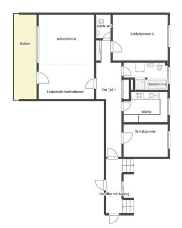 Sie ist im ersten Obergeschoss gelegen und bietet drei Zimmer, eine Küche, ein Bad, ein Gäste-WC und einen sehr großen Balkon. Das Bad ist mit Dusche, Badewanne und einem Waschmaschinenanschluss ausgestattet.