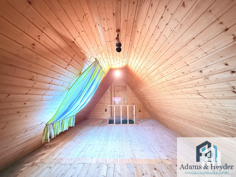 Der Dachboden ist zu einer Hälfte ausgebaut und bietet eine zusätzliche gemütliche Ebene, zum Beispiel als Spielbereich für Ihre Kinder.