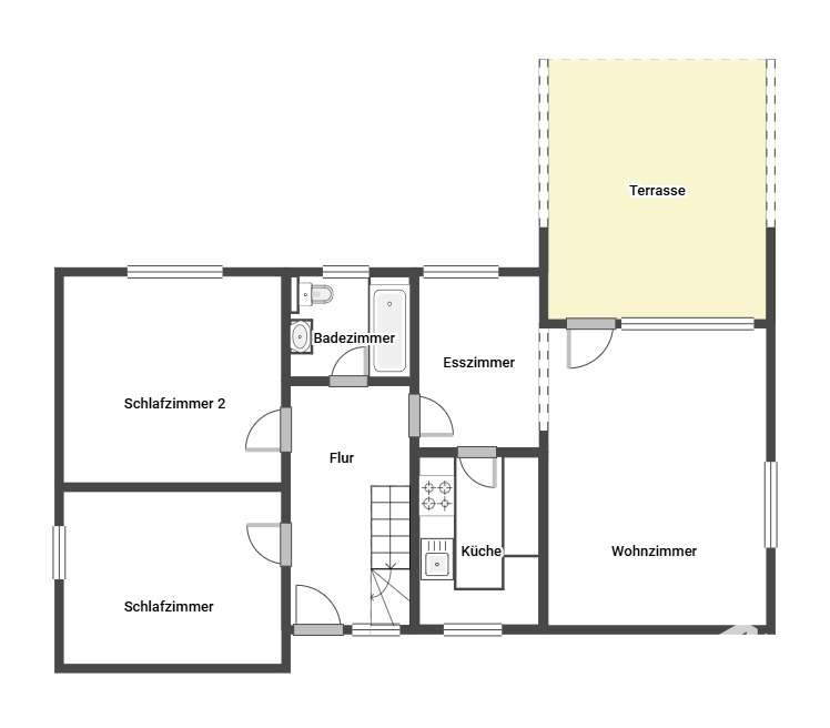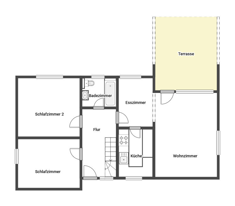 Das Haus verfügt über insgesamt 5,5 Zimmer, verteilt auf 2 Etagen. Im Erdgeschoss finden Sie ein offener, geräumiger Wohn- & Essbereich mit Parkettboden, der eine warme und einladende Atmosphäre verspricht. Von dort aus gelangen Sie auf die überdachte Terrasse und in den Garten. Die vorhandene Einbauküche ist im Kaufpreis enthalten und bietet eine praktische Grundlage für Ihre kulinarischen Aktivitäten. Darüber hinaus befinden sich auf dieser Etage zwei der vier Schlafzimmer sowie eines der beiden Badezimmer, welches mit modernen Fliesen ausgestattet ist.