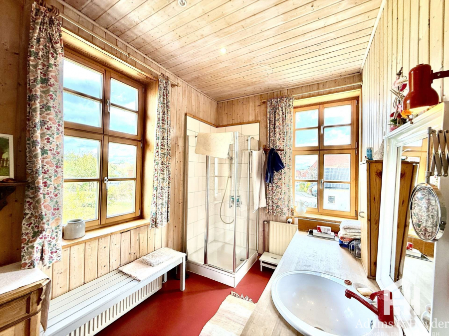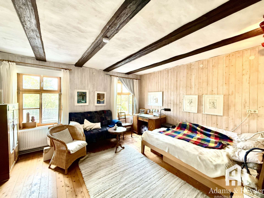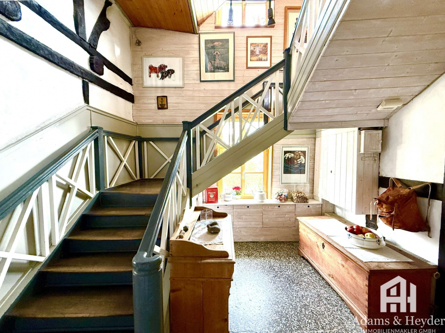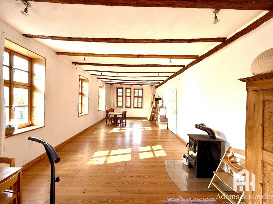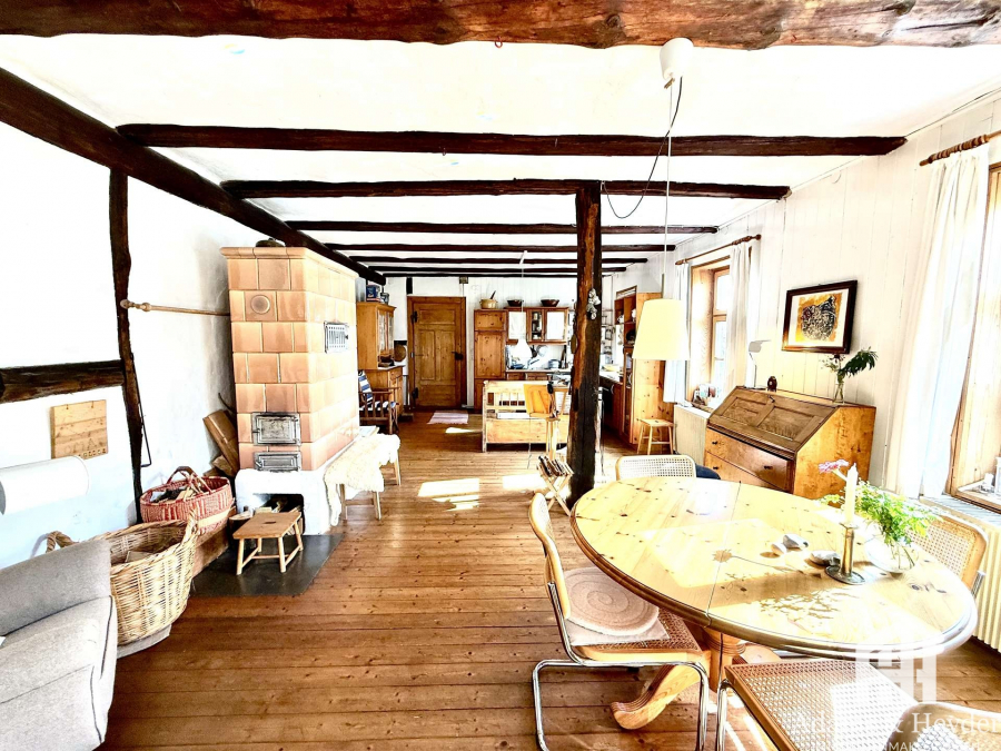Die aufwendige Sanierung mit natürlichen Materialien, die Innendämmung und der gemauerte Grundofen (Berliner Ofen) tragen zu einem angenehmen Wohnklima bei. Die offene Raumgestaltung in Verbindung mit unüblich hohen Decken sorgen für ein helles und freundliches Ambiente. Das originale Treppenhaus und die schönen Holzdielen sind liebevoll erhalten geblieben und zeugen von der reichen Geschichte des Hauses.