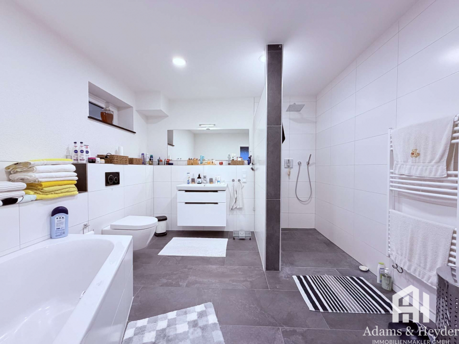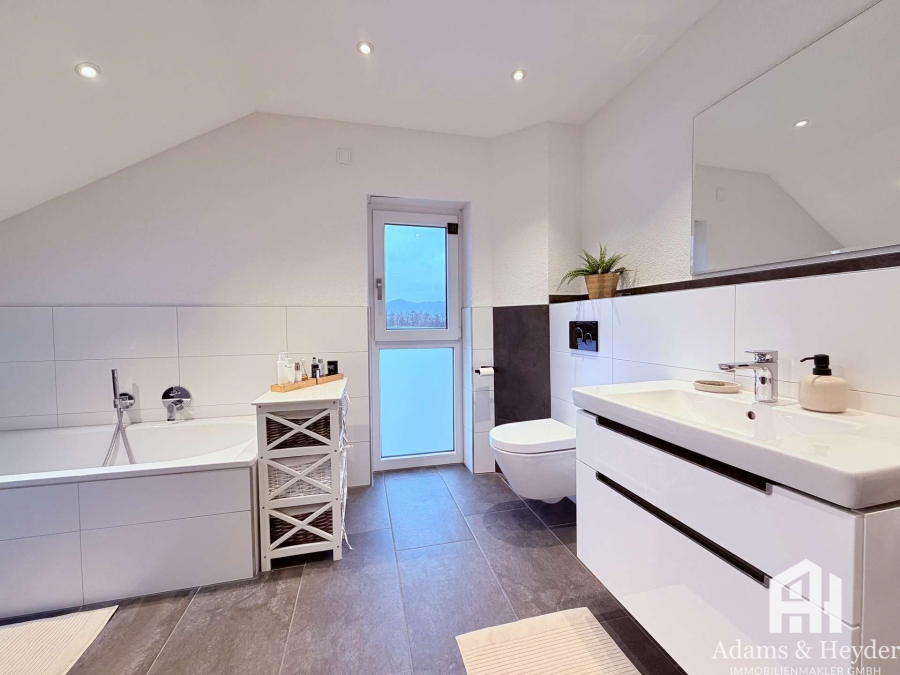 Ergänzt wird diese Ebene durch ein großzügiges, modernes Badezimmer, das mit Komfort und Stil überzeugt und einen perfekten Rückzugsort nach einem langen Tag darstellt.