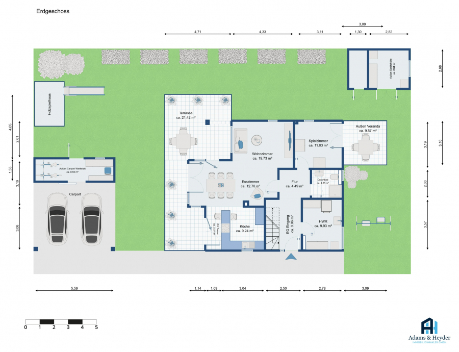 - Werkstatt hinter dem Carport bleibt drin