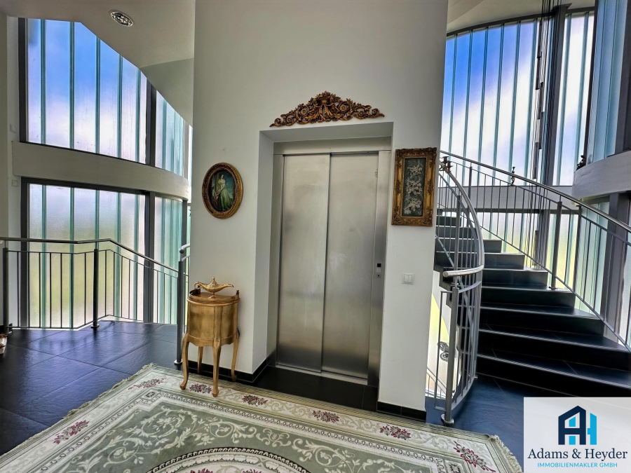 Über das abgetrennte Treppenhaus mit Personenaufzug gelangt man in jede Etage.