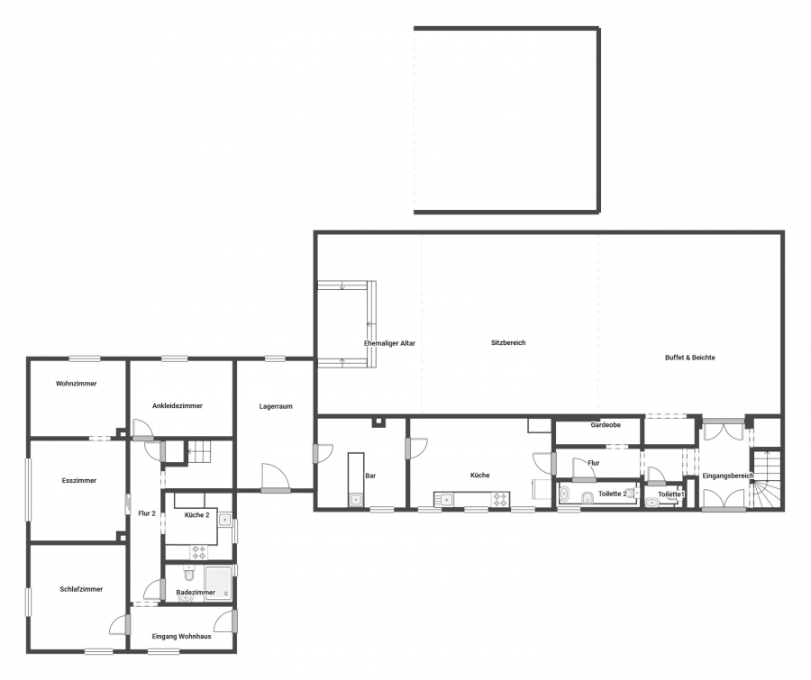 Diese besondere Immobilie in Knüllwald-Remsfeld ist eine wahre Rarität auf dem Immobilienmarkt. Es handelt sich um eine ehemalige Kirche, die zu einer einzigartigen Location umgebaut wurde und für Events genutzt werden kann, in Verbindung mit einem kernsanierten Einfamilienhaus. Die Gesamtwohnfläche des Einfamilienhauses beträgt 130,98 m², die Nutzfläche der Kirche 233,44 m² und das großzügige Grundstück bietet 1.174 m² Fläche. Das Objekt wurde in den Jahren 2020-2023 aufwändig kernsaniert und präsentiert sich nun in einem gehobenen, modernen Zustand.