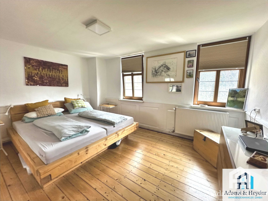 Das Obergeschoss mit ca. 110 m² und 4 Zimmern wurde in 1998 aufwendig und liebevoll kernsaniert und bietet zusätzliche Ausbaureserve im Dachgeschoss, wo bereits ein zusätzliches Zimmer mit ca. 14 m² geschaffen wurde.