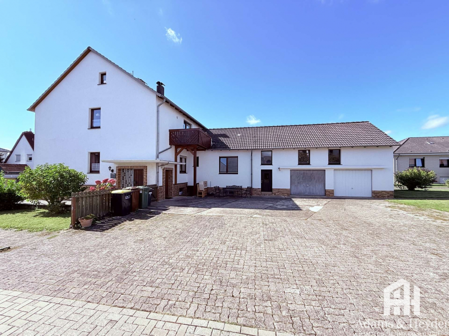Das Gebäude ist voll unterkellert und bietet dadurch umfangreiche Abstell- und Nutzflächen. Ein praktischer Anbau aus 1989 beherbergt zwei Garagen sowie zusätzliche Abstellflächen unter dem Dach – ideal für Fahrzeuge, Werkstatt und Hobbys.