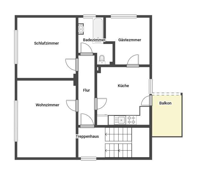 3-Zimmer-Whg mit ebenfalls großer Wohnküche und einem schönen Balkon (73,8 m²). Die Wohnung ist vermietet und die Kaltmiete beträgt aktuell 504€ monatlich.