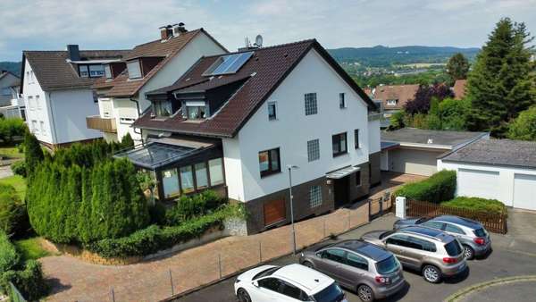 Im Dachgeschoss finden Sie einen großen Flur, eine Küche mit neuwertiger Einbauküche, ein geräumiges Wohnzimmer mit Kaminofen, ein Schlafzimmer, ein großzügiges Badezimmer mit Dusche und einen sehr großen Balkon mit traumhaftem Fernblick bis auf den Herkules.
