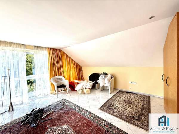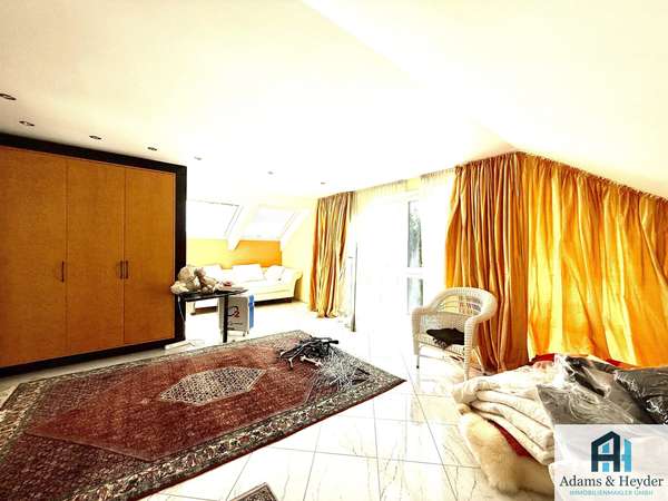 Über eine stilvolle Marmortreppe gelangen Sie auf eine Zwischenetage, auf der sich ein vielseitig nutzbares Zimmer mit eigenem Duschbad befindet – ideal als Gäste- oder Kinderzimmer. Ein eigener Balkon mit Blick ins Grüne und auf den Herkules sorgt für zusätzliche Rückzugsmöglichkeiten.