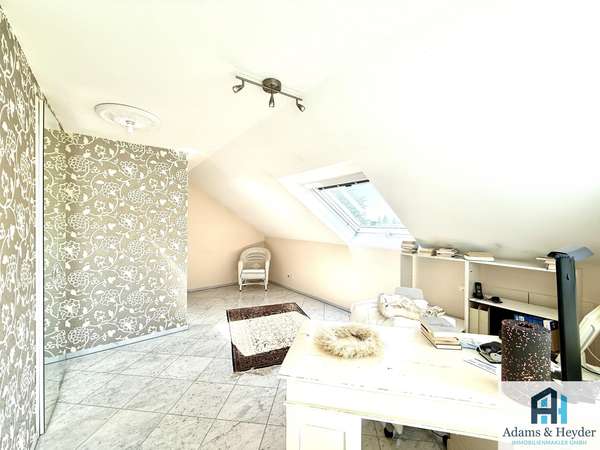 Auch für das Arbeiten von zu Hause oder eine Wohnraumerweiterung ist gesorgt: Im Untergeschoss befindet sich ein großer Büroraum mit Schlafnische, Duschbad mit WC und separatem WC. Dieser Bereich hat auch einen eigenen Zugang von außen – ideal als Büro, zusätzliches Schlafzimmer oder Einliegerwohnung.