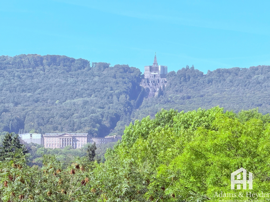 Das absolute Highlight ist der unvergleichliche Ausblick vom großzügigen Wohnzimmer und vom sonnigen Balkon: Genießen Sie den direkten Blick auf den Bergpark Wilhelmshöhe mit Schloss und Herkules – ein Panorama, das jeden Tag besonders macht, vor allem, wenn Sie nachmittags in der Sonne sitzen und Sie später den Sonnenuntergang über dem Habichtswald beobachten.